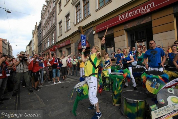 Организаторы Евро во Вроцлаве решили использовать замечательное умение этих любителей самбы во время перерыва на матче Польша-Россия. Они утверждают, что это красиво впишется в лозунг "Уважение", которое выдвинуло УЕФА.