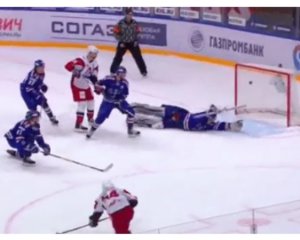 Невероятный вратарский сейв случился в одном из матчей Континентальной хоккейной лиги (КХЛ). Его героем стал вратарь питерского СКА Микко Коскинен.