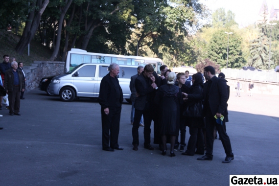 Проститься с Андреем Гусиным приехали из Грузии его бывшие партнеры по "Динамо" Каха Каладзе и Георгий Деметрадзе, а также Анатолий Тимощук из питерского "Зенита". Вместе с Гусиным они выступали за сборную Украины. Обнимаются, плачут. Чуть позже к ним присоединяется Александр Шовковский. Несколько минут молча стоят, смотрят в землю.