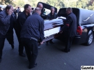 Священник читает молитву. Мать Андрея Гусина время от времени падает в обморок, ее все время поддерживают по очереди родственники, брызгают лицо водой. Рядом с гробом — флакон с лекарством, недалеко в постоянной готовности бригада скорой помощи. В гробу с одной стороны от покойного иконка, с другой — динамовский вымпел.