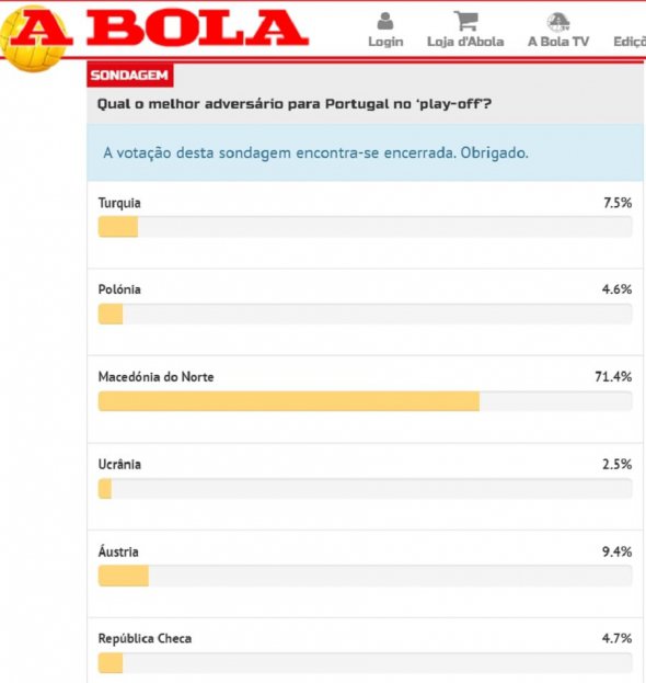 Португальские болельщики провели голосование относительно самого желанного соперника для сборной, сообщает A Bola.