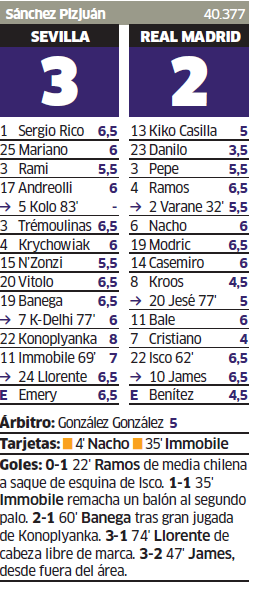 Хавбек "Севильи" Евгений Коноплянка стал лучшим игроком матча с "Реалом" по мнению Marca.
