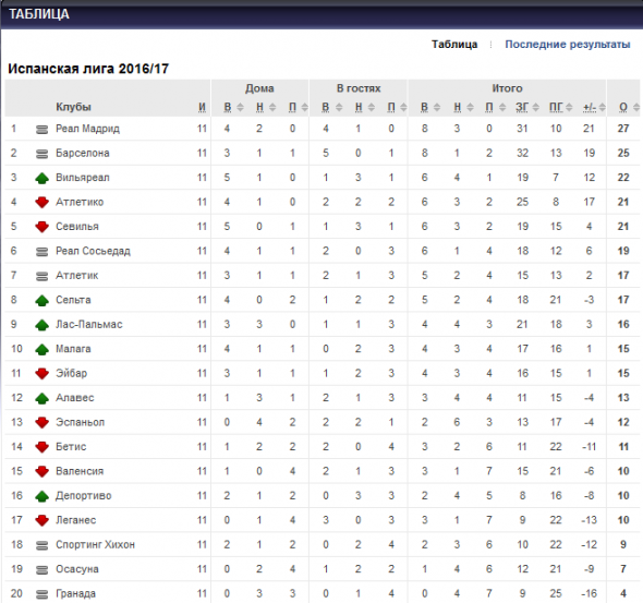 Мадридский "Реал" продолжает лидировать в испанской футбольной ла лиге после матчей 11-го тура чемпионата.