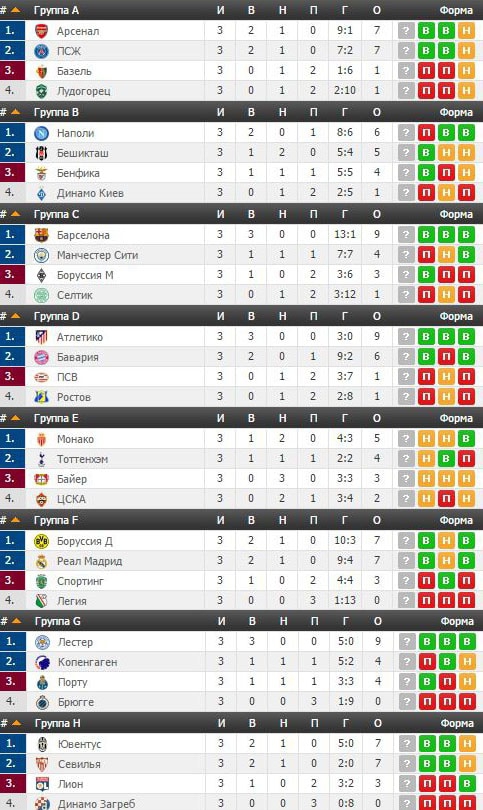 19 октября состоялись заключительные 8 матчей 3-го тура группового этапа Лиги чемпионов.