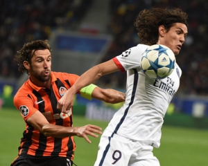 В темной форме ПСЖ, в белой - "Шахтер". "Шахматный" матч