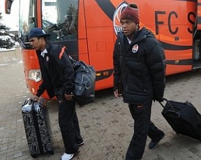 Сегодня, в 15:45, донецкий "Шахтер" вылетел в Дортмунд на ответный матч 1/8 финала Лиги чемпионов против "Боруссии".