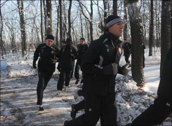 Минусовая температура добавила футболистам бодрости, так что тренировка проходила в быстром и живом темпе. Тренеры выстроили упражнения таким образом, чтобы кроссы чередовались с бегом на короткие дистанции и преодолением препятствий. Кстати, бразильцы всем своим видом показывали, что донецкий мороз им нипочем, то и дело пытаясь подшутить над своими товарищами.