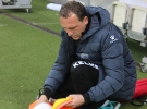 Тренировка началась с обращения наставника к команде. Буньяку имел, что сказать своим подопечным - сборная Косово достаточно долго стояла в центральном круге. Затем игроки пробежали три круга. После пробежки футболисты переместились на противоположный от журналистов фланг.