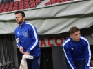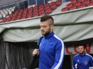 Первым на поле вышел наставник косоваров Альберт Буньяки. Тренер взялся раскладывать фишки. Через несколько минут из раздевалки начали выходить футболисты. Двое игроков несли мячи для тренировки.