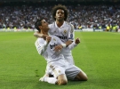 Уже после первых 15 минут игры "Реал" выигрывал со счетом 2:0, после двух точных ударов Роналду, забившего сначала с пенальти, а потом после передачи Озила. Но "Бавария" сократила счет еще в середине первой половины встречи - Роббен реализовал пенальти. Основное время так и завершилось со счетом 2:1 и по сумме двух матчей установилось равенство. В экстра-таймах голов зрители также не увидели, а потому судьба матча решалась в серии пенальти.