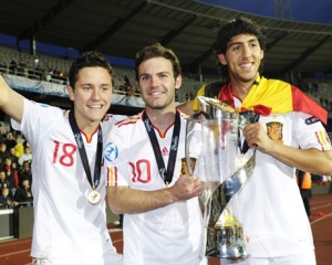 Футболисты сборной Испании ликовали после победы на чемпионате Европы-2011 среди молодежи в Дании и посвятили ее своим родным и близким.