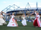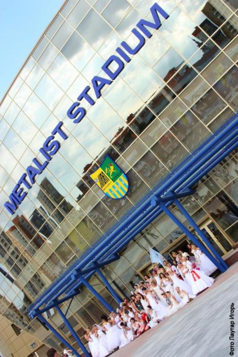 Яркая фотосессия на ОСК "Металлист" проходила с футбольной атрибутикой: мячами, шарфами и буцами. Девушки с удовольствием фотографировались с воспитанниками футбольной школы СК "Металлист". Праздничный фуршет в ресторане СК "Металлист" был заключительным этапом программы третьего Парада невест, после чего девушек покатали на мотоциклах харьковские байкеры.