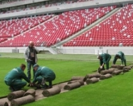 На стадионе "Народовом" в Варшаве накануне полуфинала пришлось перестелить травяное покрытие. "Нам не будет стыдно за газон", - заявил Марек Выпиховский, специалист компании "Зеленая архитектура", работники которой укладывали покрытие и ухаживают за ним в течение всего чемпионата.