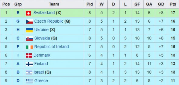 Сейчас у Украины есть 16 очков после семи сыгранных матчей. Поединки с аутсайдером группы, которым является Армения, не считаются.