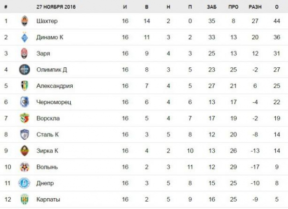 Завершились матчи 16-го тура украинской премьер-лиги. В 6 матчах тура было забито 17 голов. "Шахтер" сохранил свой восьмиочковый отрыв от "Динамо", а киевский клуб увеличил свое преимущество над "Зарей" до пяти пунктов.