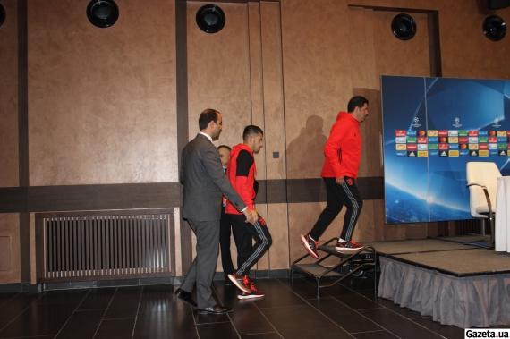 После ответов футболист покинул конференц-зал. Добавим, что на пресс-конференцию посетил спортивный директор "Бенфики" Руй Кошта. Легенда клуба и португальского футбола с интересом слушал Пицци, а затем Руя Виторию.