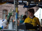 Вместе со шведскими болельщиками приехали и молодые ребята, чтобы подзаработать. На шведской площадке пиво наливают именно туристы из Швеции. Они обслуживают своих фанов, а украинские девушки украино-и русскоязычных гостей.