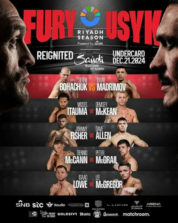 Вечер бокса состоится 21 декабря в Эр-Рияде. В первом поединке Усик одолел Фьюри раздельным решением судей.