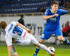 Несколькими минутами спустя "Днепр" уже выигрывал - это Стриничу удался отличный удар с дальней дистанции.