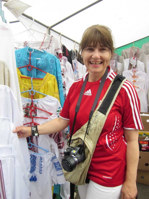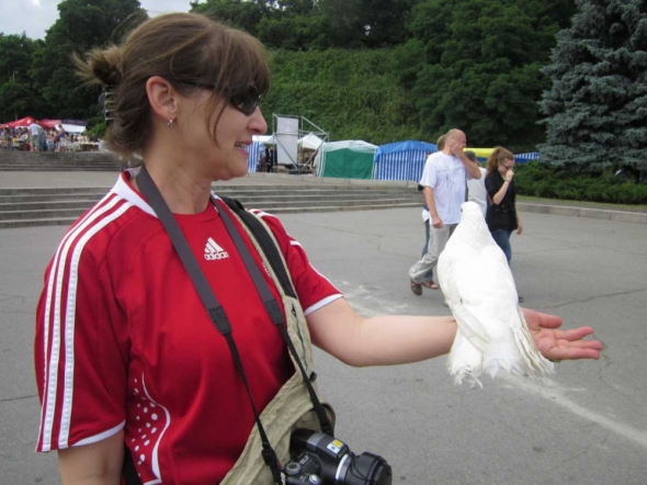 "Это 12 век? - Конни фотографирует стены. - У нас в Канаде нет памятников, древнее 17 века. А тут - аж представить страшно. Мне посоветовали пойти в Лавру. Сказали - это первое место, где в Киеве нужно побывать. А что у вас там дальше? Почему люди так нарядные? Народное гулянье? Фестиваль? Как называется? "Краина мрий"? Пойдем посмотрим ".