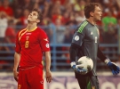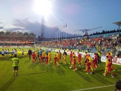 Первый тайм прошел в равной борьбе. Забить мяч могли обе команды. Слабо играли в центре обороны Тимощук и Ракицкий. Их неудачные действия позволили Вучиничу выскочить один в один с Пятовым, но Мирко промазал. На 33 минуте матча Зозуля удачно подыграл Ярмоленко, но Андрей попал в штангу. В концовке первого тайма Зозуля поддался на провокацию соперника и получил красную карточку за отмашку.