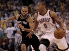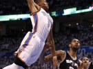 "Оклахома" выиграла серию до четырех побед со счетом 4:2. В финале "Тандер" сыграют с победителями пары "Бостон Селтикс" - "Майами Хит". После пяти игр счет в серии в пользу "Бостона" - 3:2.