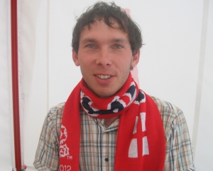 26 летний россиянин Вячеслав Борисов приехал в Украину с друзьями к родственникам и знакомым. Очень хотел поболеть за свою сборную на Евро-2012, но не смог поехать в Польшу. Встречаемся в киевской фан-зоне.