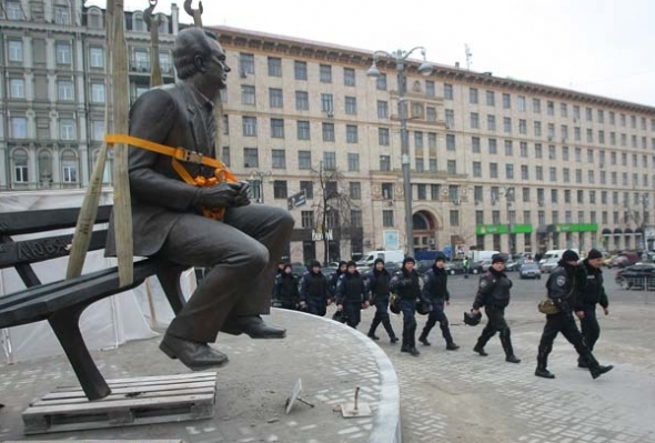 Сейчас идут финальные работы по подготовке постамента и установке скульптуры на месте, с которого сидящий на скамейке Лобановский будет лучше виден с улицы.