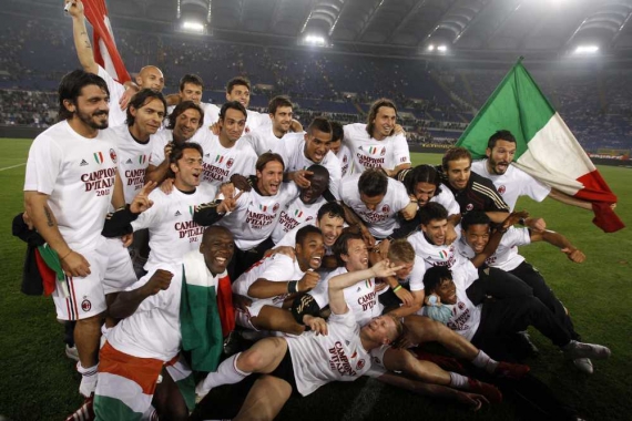 Футболисты "Милана", сыграв на выезде вничью с "Ромой", стали чемпионами Италии сезона-2010/11.