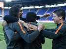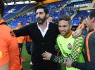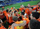 Сразу после матча футболисты донецкого клуба устроили празднования с обливанием шампанского у кромки поля. Затем команда переместилась в раздевалку, где веселье продолжилось.