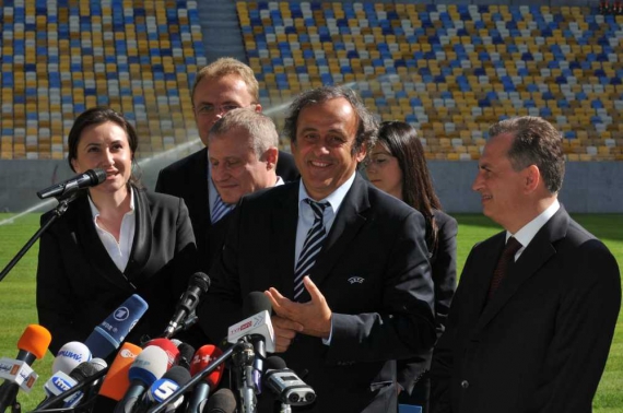 Сегодня арену проинспектировал президент УЕФА Мишель Платини. Француз прибыл в Украину с двухдневным визитом. Глава европейского футбола посетит Харьков, Донецк и Киев.