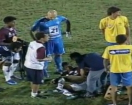 Инцидент произошел на 32-й минуте игры. Нью Хамбурго забил гол, но судья отменил взятие ворот из-за офсайда. В результате на поле возник конфликт.