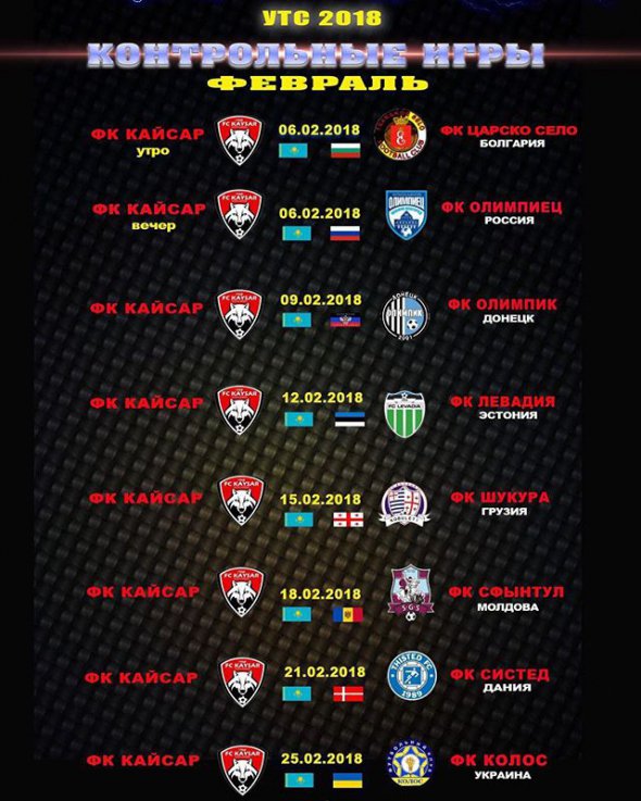Анонсируя ближайшие контрольные матчи, "Кайсар" отметил, что 9 февраля сыграет товарищеский матч с донецким "Олимпиком".