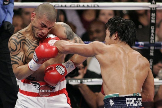 Однако скорость филиппинца, его невероятная выносливость и умение держать удары сделали свое дело. Примерно пять раундов Котто держался почти на равных, часто проводил удачные комбинации, но при этом дважды побывал в нокдаунах.