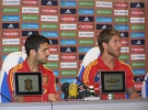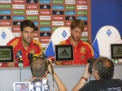 Сегодня, 29 июня, двое футболистов сборной Испании Серхио Рамос и Сеск Фабрегас встретились с журналистами в конференц-зале стадиона "Динамо". Команда еще вчера прилетела в Киев, где будет готовится к финалу Евро против Италии. В 19:00 испанцы проведут закрытую тренировку на поле динамовской арены.