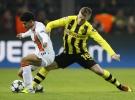 Первый тайм матча полностью прошел под диктовку хозяев поля. И во второй половине тайма это преимущество материализовалось в голы. Сначала на 31-й минуте после подачи углового центральный защитник "Боруссии" Фелипе Сантана выиграл борьбу у Ярослава Ракицкого и головой точно пробил в ближний угол. А через шесть минут польский форвард дортмундцев Роберт Левандовски прострелил с правого фланга, а Марио Гетце в центре штрафной выиграл позицию у двух защитников "Шахтера" и переправил мяч в дальний угол.