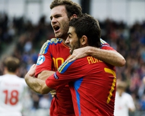 ИСПАНИЯ U-21: Де Хеа, Дидак, Монтойя, А. Домингес (Боян, 77), А. Ботиа, Андер (Капель, 58), Хави Мартинес, Тиаго Алькантара, Муниаин (Жеффрен, 71), Адриан, Мата.