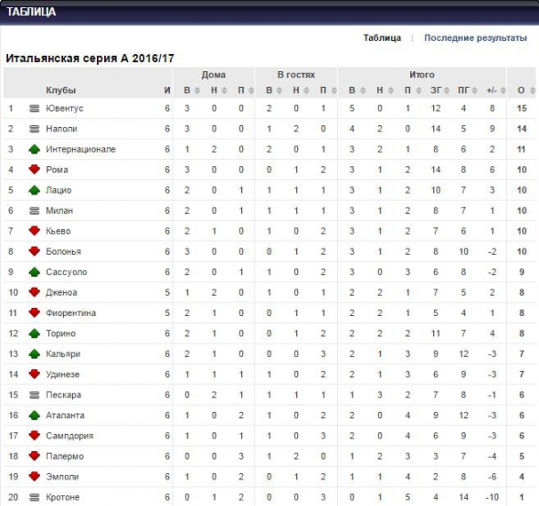 "Рома" с 10 очками занимает 4-е место в серии "А", "Торино" с 8 баллами - на 8-й строке.