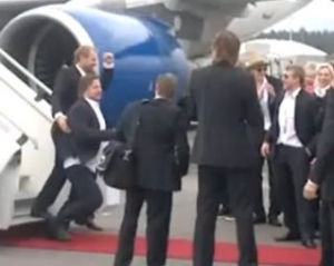 Нурминен спускался по трапу с помощью другого члена тренерского штаба - Петри Матикайнена, но на последней ступеньке не удержался на ногах.