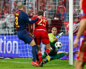 В-третьих, по мнению авторов Marca, на 73-й минуте перед тем, как Арьен Роббен забил третий мяч в ворота "Барселоны", Мюллер нарушил правила на защитнике испанского клуба Хорди Альбе.