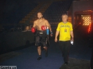 В 22.45 трибуны начинают бурно аплодировать - в зал заходит в сопровождении нескольких охранников Виталий Кличко. Он направляется к центру и садится в первом ряду под самым рингом.
