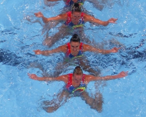 Украинские синхронистки Лолита Ананасова, Елена Гречихина, Анна Клименко, Александра Сабада, Катерина Садурская, Анастасия Савчук, Анна Волошина и Ольга Золотарева завоевали бронзу в произвольной программе групп с результатом 933,640 балла. Победили россиянки (97,400), серебро выиграли испанки (94,230).