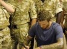 Футболист раздавал автографы и позировал для фото на базе Кэмп Бастион в провинции Гильменд, где находится около 9000 британских военных, передает Daily Mail.