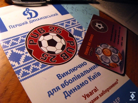 На стеклянных дверях паба красуется запрет на его посещение "кротам", "хорькам", "свиньям" и "петухам". Животные - в шарфах цветов "Шахтера", "Металлиста", "Спартака" и киевского "Арсенала". А для тех, кто не поймет, есть разъяснение в меню заведения: "Исключительно для болельщиков" Динамо "Киев. Внимание! Вход с животными запрещен".