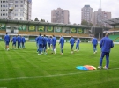Пока сборная начинает свою тренировку, работники стадиона завершают последние приготовления к поединку. Украинская сборная прилетела в Кишинев без тренера по вратарям Юрия Роменского. Наши голкиперы занимаются самостоятельно.