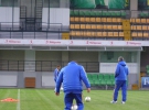 После первых 15 минут журналистов попросили покинуть поле. Возле стадиона находится детская спортивная школа. Несколько ребят в спортивной форме с интересом наблюдали за тренировкой украинцев возле одного из входов на трибуну, пока их не засек охранник.