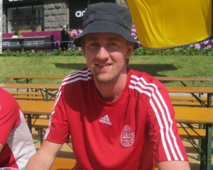 В шведской части фан-зоны общаются между собой много фанатов соседней со Швецией Дании. Их сборная не будет играть в Киеве, но болельщики говорят, что сознательно выбрали размещение здесь. Общаемся с 28-летним Стигом Иенсеном из Копенгагена.
