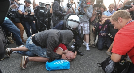 Продолжаются столкновения между болельщиками обеих сборных, колонна российских фанатов по-прежнему блокирована на мосту через Вислу, и полиция запрещает россиянам пройти к стадиону в связи с тем, что в непосредственной близости арены раз за разом возникают драки отдельных групп болельщиков двух стран.