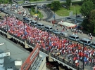 "В итоге стражи порядка пропустили россиян не по основной части моста через Вислу, а по узкой лестнице, которая тоже ведет к стадиону", - отмечает агентство.