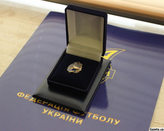 Президент ФФУ вручил арбитрам цветы, грамоты и новую форму.